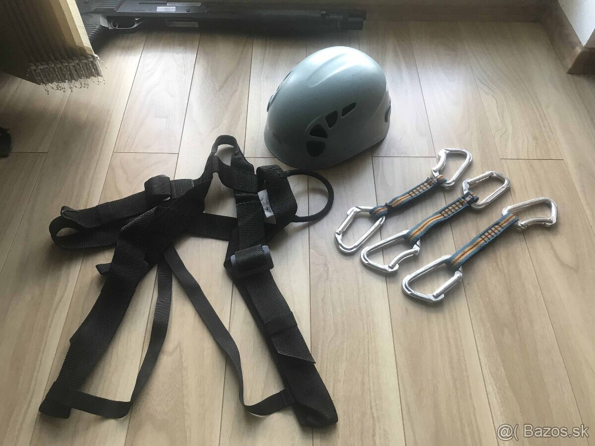 Predám staršie lezecké vybavenie, nepoužitý sedák ManMat, helma Petzl Elios veľ. 53-61cm a 3 expresky Faders. Cena 70€.