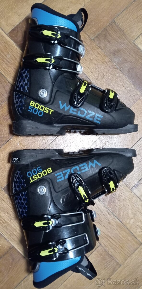 Predám detské lyžiarky zn. DECATHLON WEDZE 500. Sú v dobrom stave použité boli m2 sezóny. Čo sa týka vizuálnej stránky tak sa nájdú nedostatky - pozri foto. Tak ako to býva u detí sú oškreté od lyží. Sú ideálne na začiatok ako aj pre skúsenejšieho. Odporúčam nám sa osvedčili.